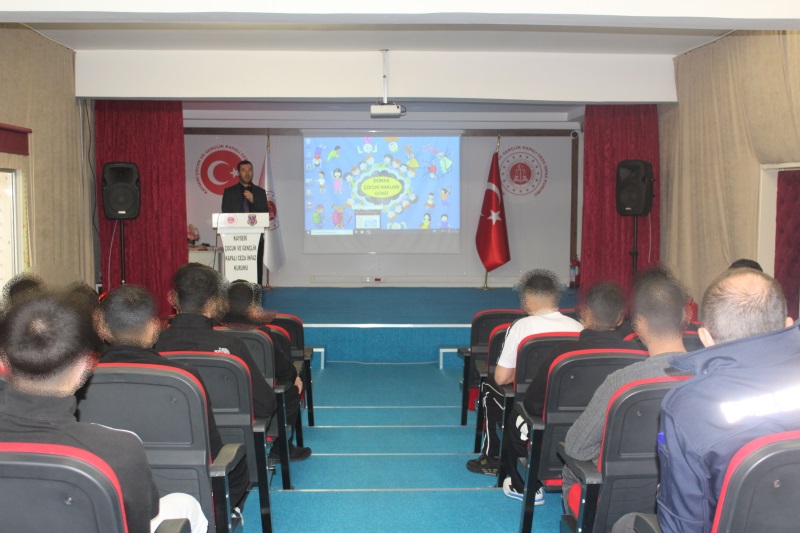 Kurumumuzda bulunan çocuklarımıza yönelik kurum öğretmenimiz Sefa KAVASOĞLU tarafından Dünya Çocuk Hakları Temalı Seminer düzenlenmiştir.