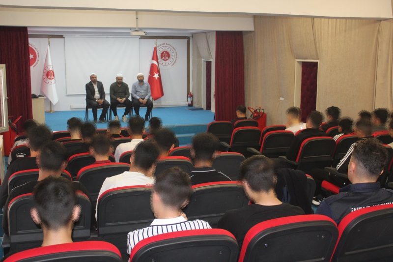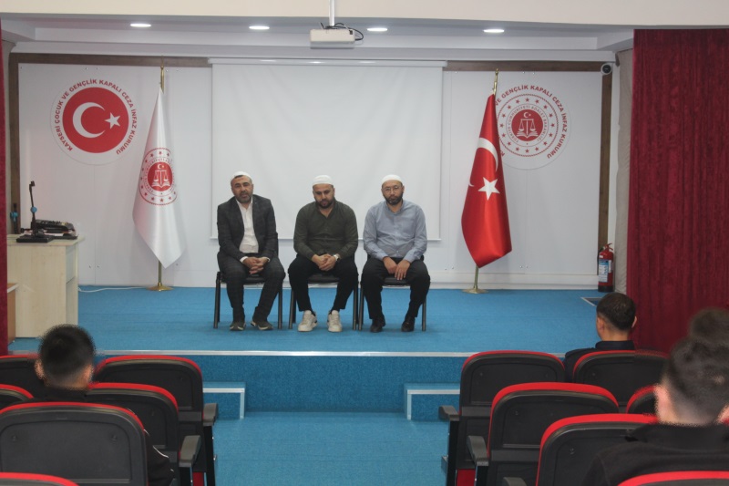 Kayseri Çocuk ve Gençlik Kapalı Ceza İnfaz Kurumu Manevi Rehberlik Birimi faaliyetleri kapsamında Bünyan Ebekız Ana Cami İmamı Yavuz AKAN, İmam Hatip Ömer Ceyhan ve Kurum Vaizimiz Ali YALNIZ tarafından kurumumuzda bulunan suça sürüklenen çocuklara yönelik Kur’an-ı Kerim Tilaveti ve İlahi Dinletisi gerçekleştirildi.