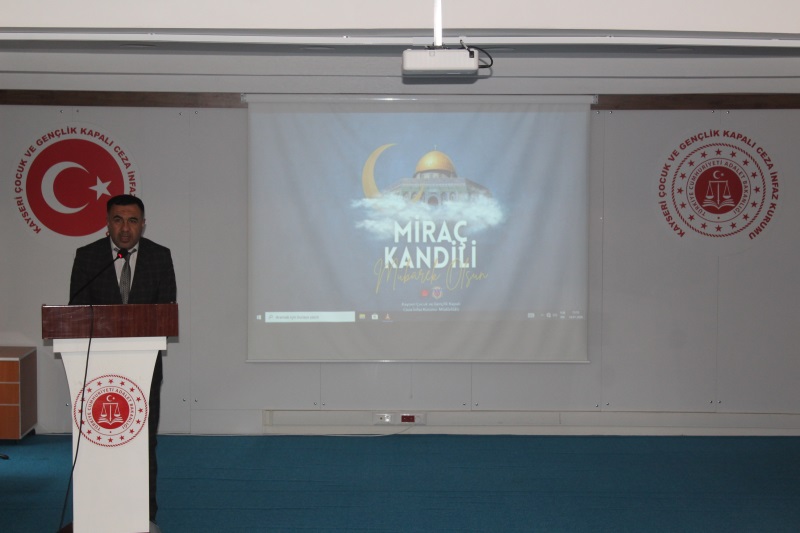 Manevi Rehberlik Birimi faaliyetleri kapsamında kurumumuza teşrif eden Kayseri 2 Nolu T Tipi Kapalı Ceza İnfaz Kurumu Vaizi Halil YILMAZ tarafından Miraç Kandili Programı gerçekleştirildi. Program sonunda çocuklarımız ve personele lokum ikram edildi.