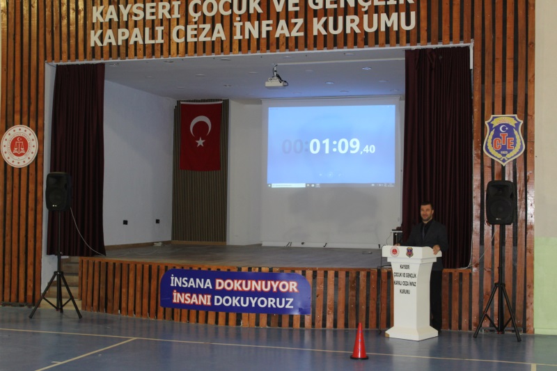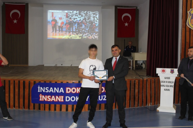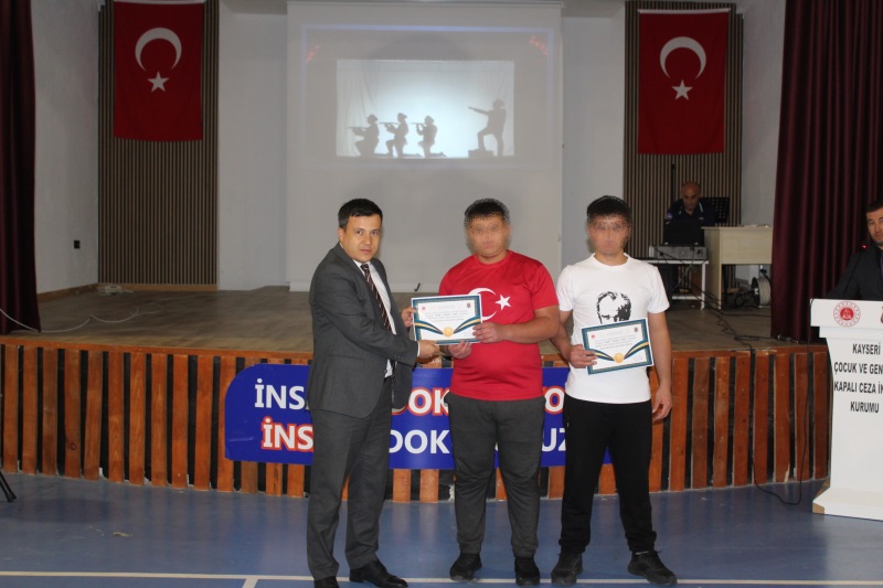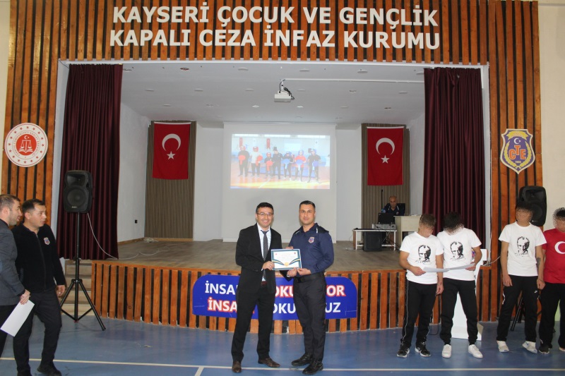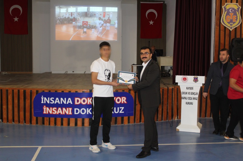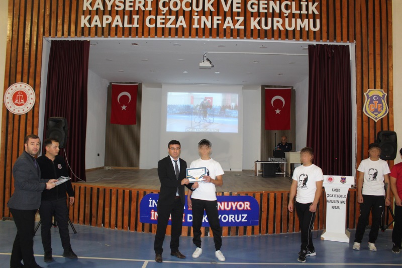 Grup Liderleri tarafından düzenlenen yarışma finaline 2’şerli takımlar halinde toplam 24 yarışmacı katıldı. Büyük heyecana sahne olan yarışmada İlk 3’e giren takımlara başarı belgeleri ve hediyeleri, Kayseri Ceza İnfaz Kurumlarından Sorumlu Cumhuriyet Savcısı Sayın Hasan CAN ve Kurum Müdürlerimiz tarafından takdim edildi. Program sonunda ise daha önce düzenlenen bilgisayar oyunu turnuvasında şampiyon olan memurlarımız ile çocuklarımızın başarı belgelerini Kurum 2. Müdürlerimiz takdim etti.