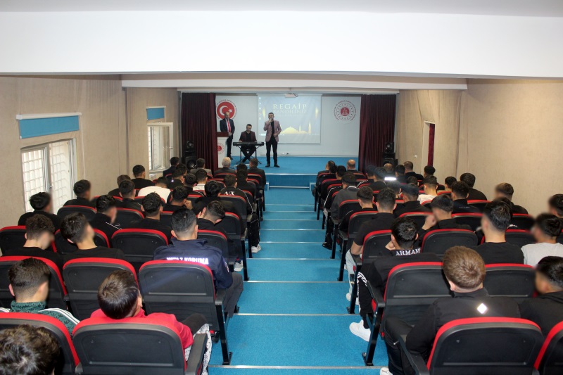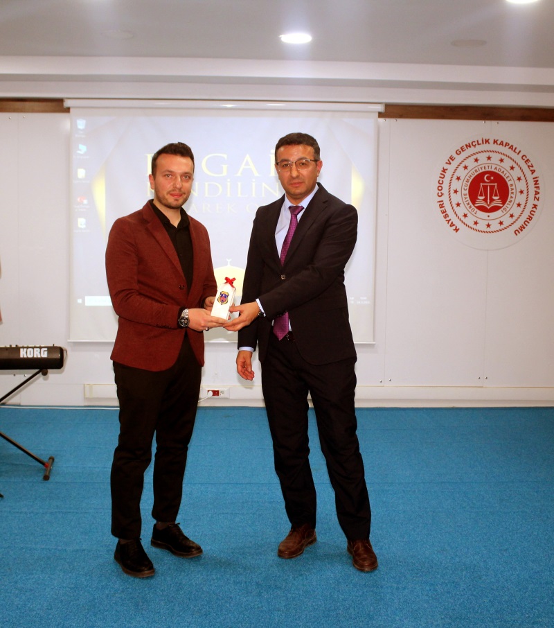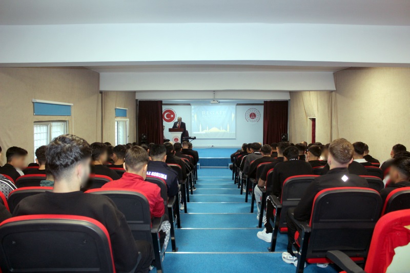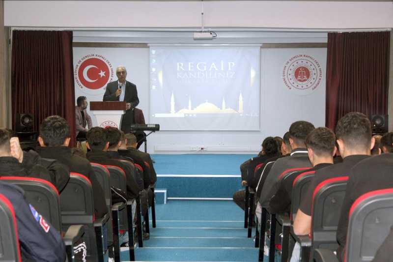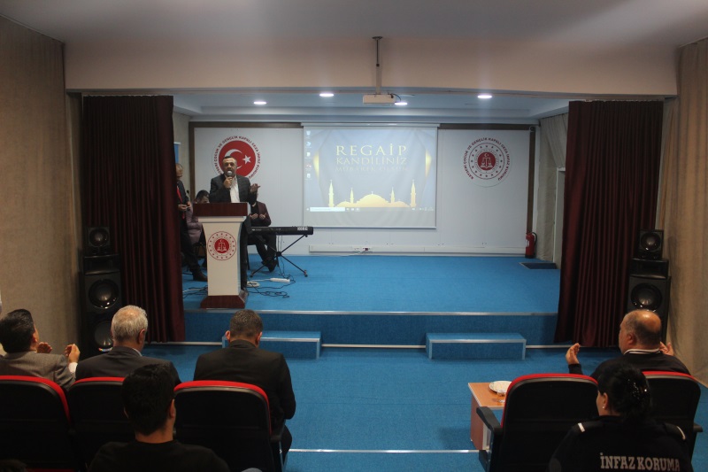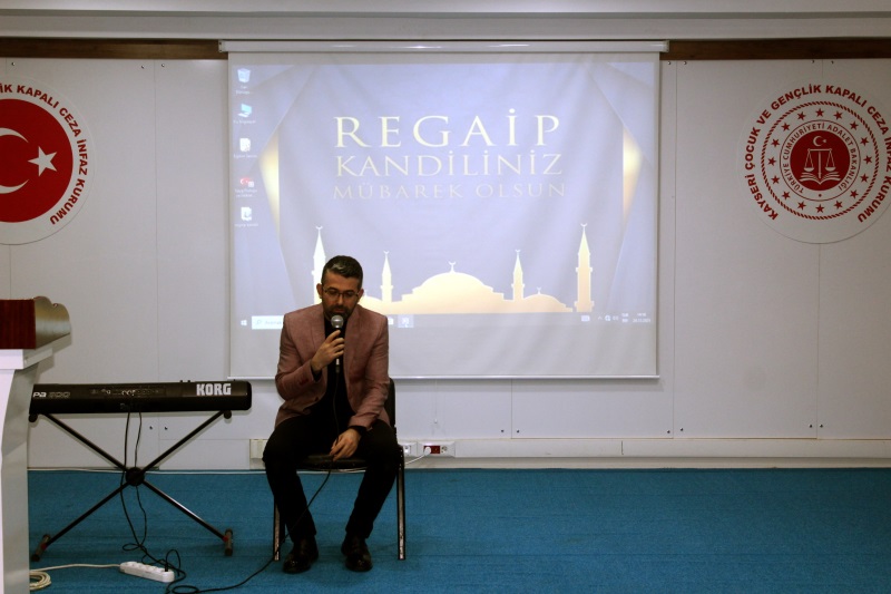 Bu sebeple kurumumuzda Manevi Rehberlik Birimi tarafından Regaib Kandili programı düzenlenmiştir. Program Talas İlçe Müftülüğü Mevlana Cami Müezzin Kayyımı Bünyamin FINDIKÇI’nın Kur’an-ı Kerim Tilaveti ile başlamıştır. Ardından Bünyan İlçe Müftüsü Sayın Mehmet ÜNSAL Regaib ve Üç Aylar konulu konuşmalarını yapmış, mütakiben Talas İlçe Müftülüğü Mevlana Cami Müezzin Kayyımı Bünyamin FINDIKÇI ve İlahi Sanatçısı Raşit AZGIN tarafından ‘’İlahi Dinletisi’’ gerçekleştirildi. Kurum Müdürümüz Görkem TUMBA tarafından misafirlere hediye takdim edilerek Kayseri İl Müftülüğü tarafından kurumumuzda kalan çocuklara bu gecenin hürmetine ikramları dağıtıldı.